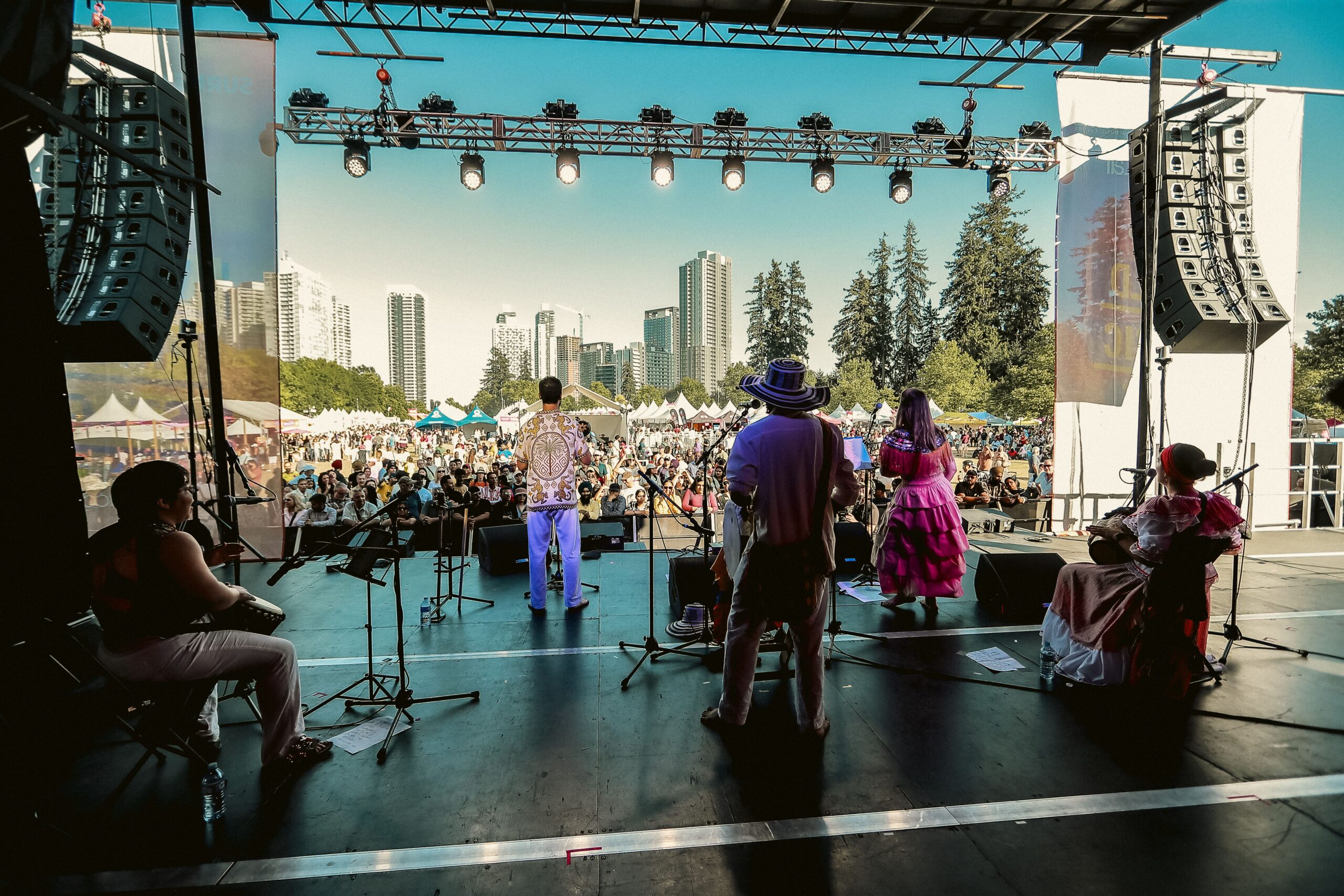 Quilombera Ensemble is a dynamic musical project rooted in the vibrant traditions of the Colombian Caribbean coast. Based in Nelson, British Columbia, the ensemble performs a varied repertoire that blends the driving rhythms of Afro-Colombian folklore — such as cumbia, bullerengue, mapalé, fandangos, etc — with contemporary harmonic textures and original compositions.
